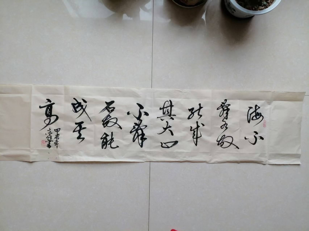 马东保,男,汉族,甘肃省天水市人。1957年生,退休教师,从事教学工作40余年。在学生时代,就喜欢书法这门艺术,并师从胡福如老师,霍瀚林,马建邦,霍效贤等当地书法名人。在教学岗位上,边教学、边潜心钻研书法,习《兰亭序》、《玄秘塔》、怀素《自叙帖》、祝允明《草书诗帖》、赵孟頫《行书集唐诗》、《毛主席诗词三十七首草书字帖》等帖。几十年如一日,先在费纸上练,后来在磨光的砖块上写,再在水写纸上写,最后才到宣纸上写。每天坚持,从未间断。不管场何,不管地点,只要有时间就练。书法作品曾在省,市及刊物上发表,又在“秦韵杯”全国书画大赛中授予“优秀奖”等。