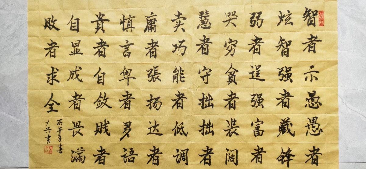 姓名:舒广兴,、性别男,民族汉,籍贯:山东省滨州市博兴县湖滨镇东二村,简历:从小上学,二年级时,启萌老师刘乐见,是当地非常有名望的书法老师。在老师的培养下,逐渐展露锋芒,从小学到初中以及高中,都是书法尖子,后来在学校当民师,也不断学习进取,现在虽然年令已高,但还是继续练习,逐渐提高书法水平,个人对书法很热爰执着,以是生活中不可缺少的一部分。也是对书法艺术的传承和发展,弘扬中国文化艺术,将推向普及和灿烂的明天。